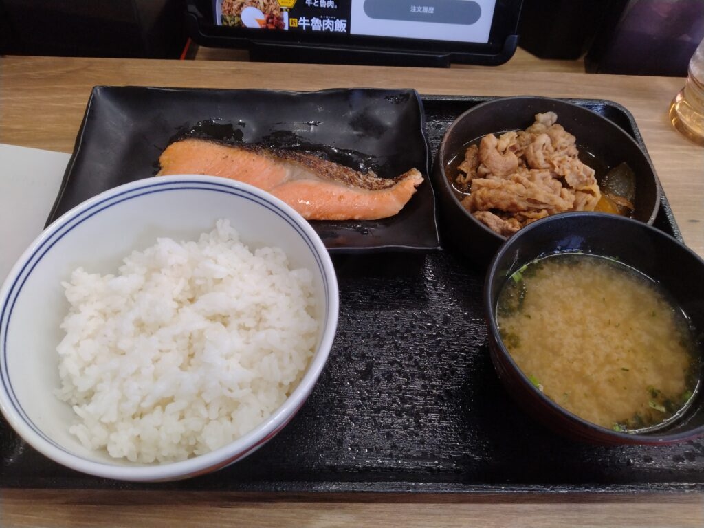 数ヶ月ぶりに某牛丼屋さんの牛鮭定食