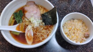 某町中華ライクな居酒屋さんで半チャーハン中華そばセットうまい...