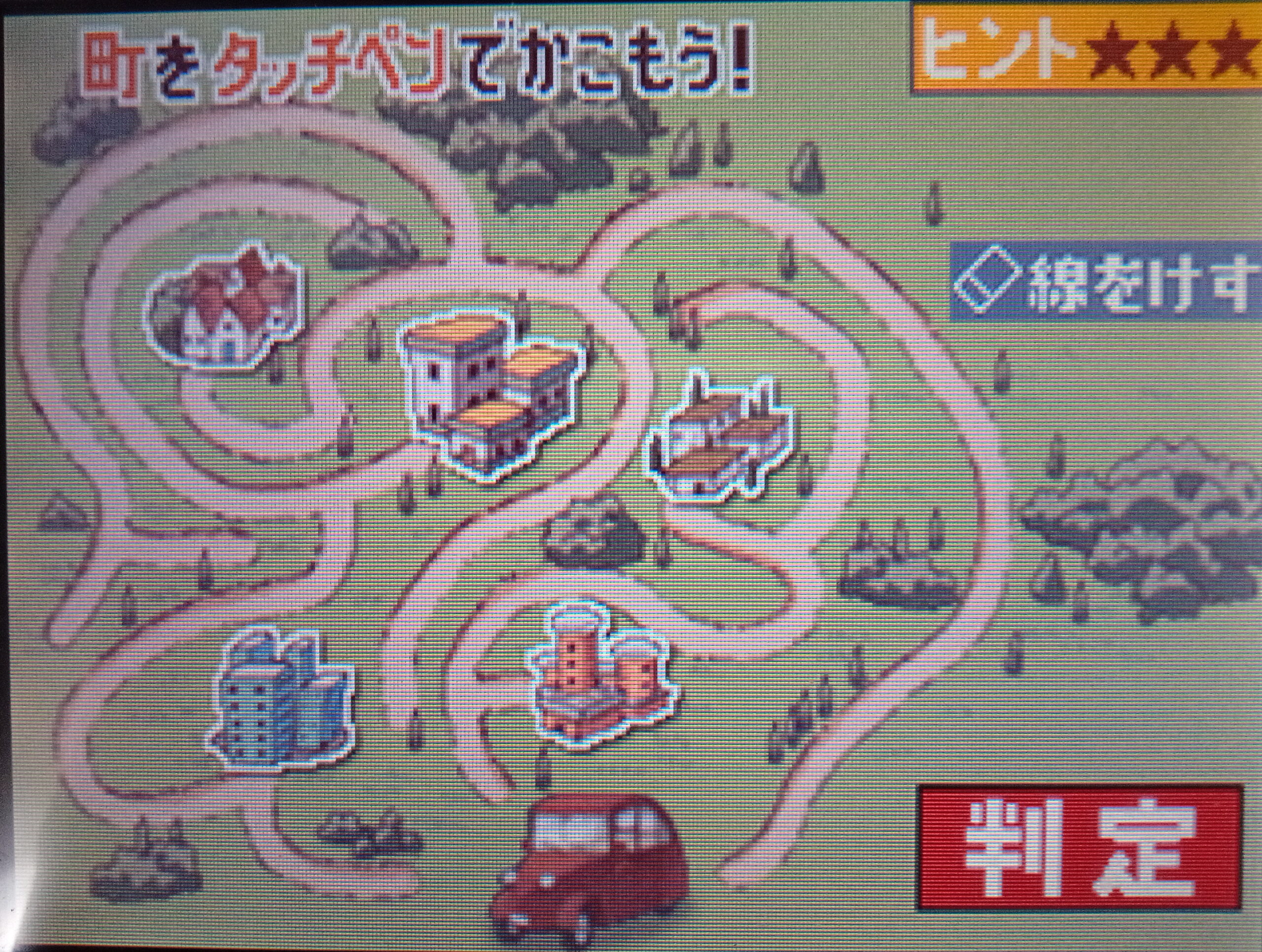 | プロンプト①に 対する生回答の 要約 | ・レイトンシリーズのゲーム画像だと理解。 ・町の数(5つ)と特徴と位置も認識。 | ・町の数は6つと判断。 | ・町の数(5つ)と認識したようだが、車の絵が町だと誤認識している模様? |
