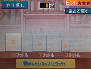 実際に試したところ、目的(10リットル、7リットルのカップに5リットルずつ分ける)に
