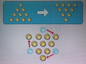 このうち3個のコインだけを動かして、三角形の向きを反対にしてほしい。