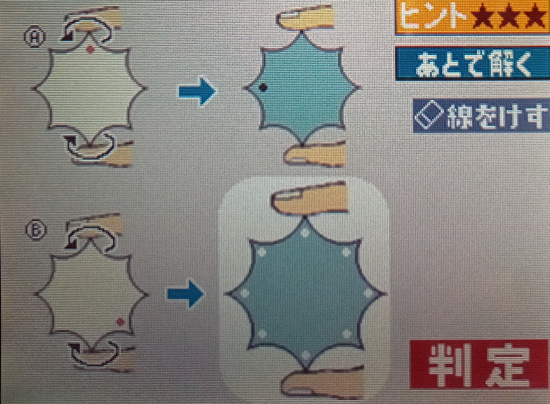 頂点のとがった八角形のボール紙の盤を、Aの左図のような位置に