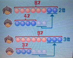 「お姉ちゃんに僕の歳を2つあげると、お姉ちゃんの歳は僕の2倍になるネ」