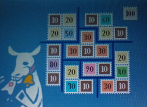 10円~100円までがランダムに配置された800円分の切手シートを買ってきた。