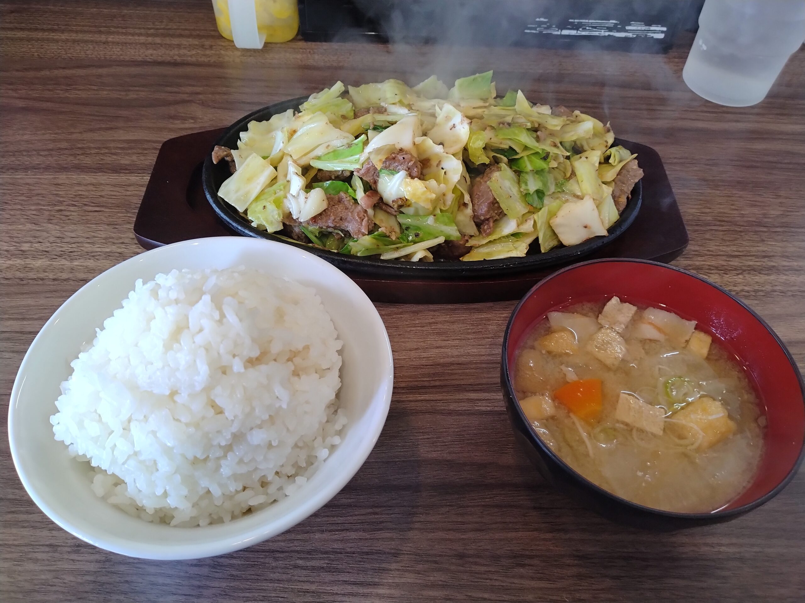 見ての通り、おかずは鉄板の上にこんもりなので、ただ上から食べる