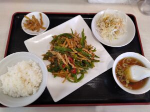 中華系(たぶん)の方が営んでいる中華料理店で青椒肉絲定食