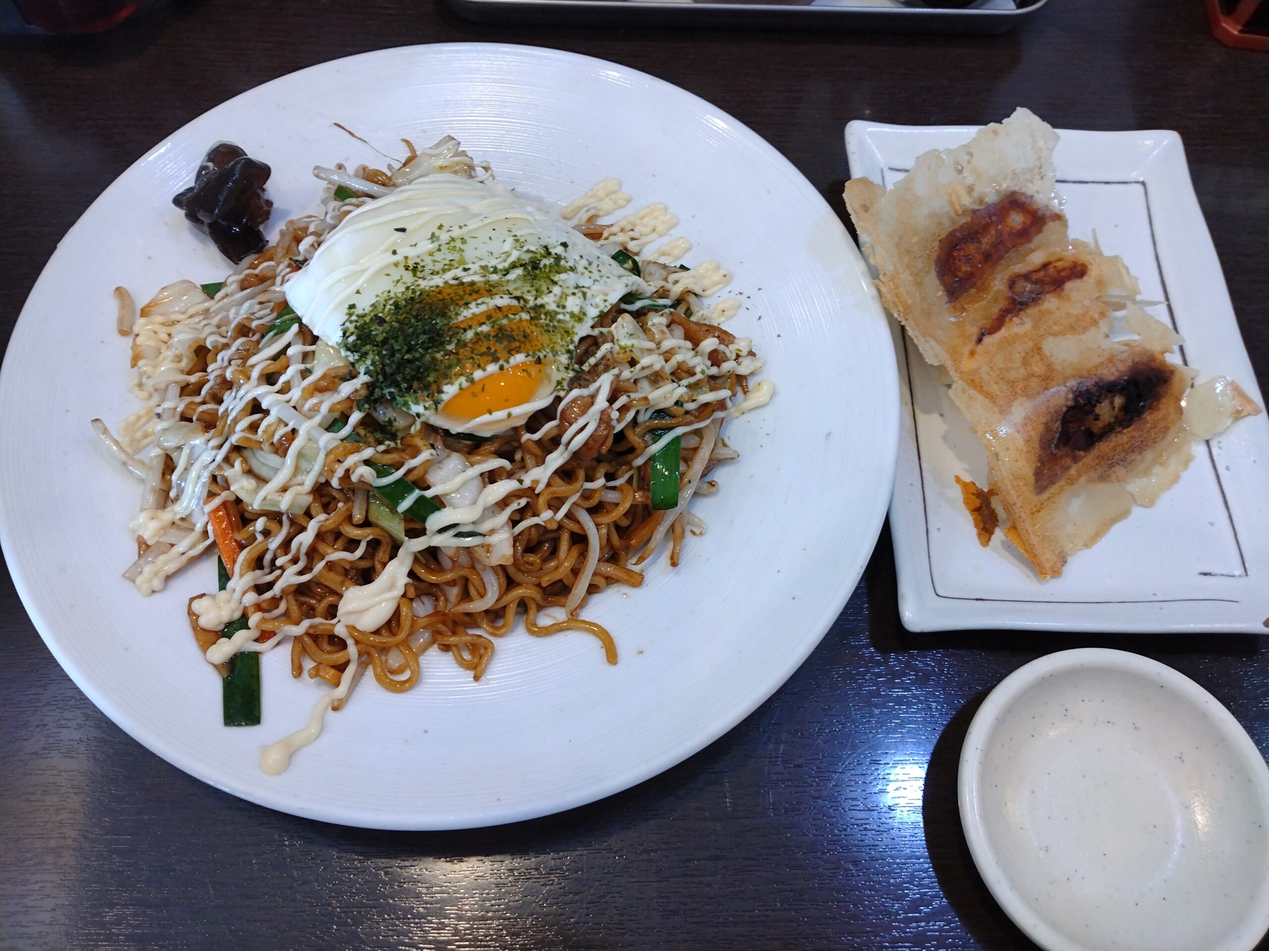郊外の中華料理屋さんでソース焼きそば+焼き餃子3個