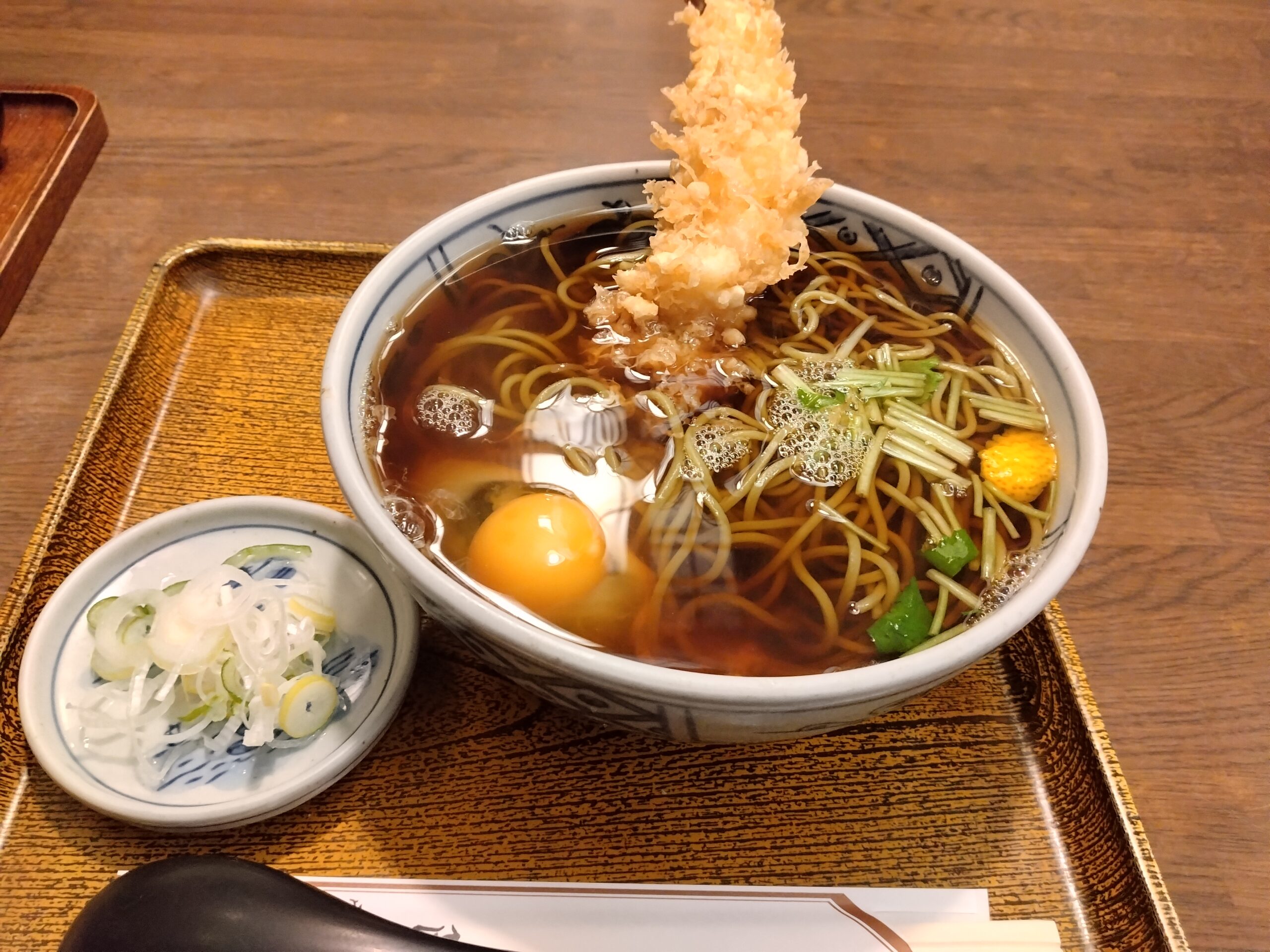 地域で有名な歴史のある蕎麦屋さんで天麩羅そば+生卵