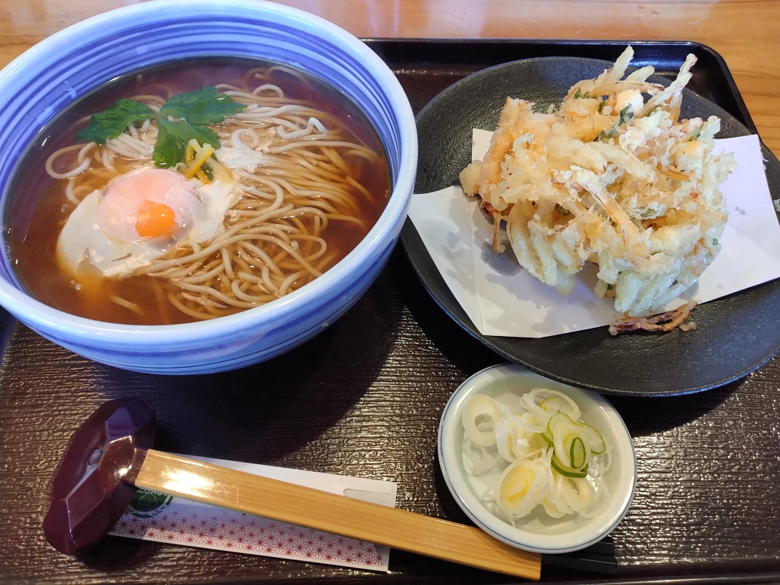 蕎麦を食わせるチェーン店でエビかき揚げ蕎麦+玉子