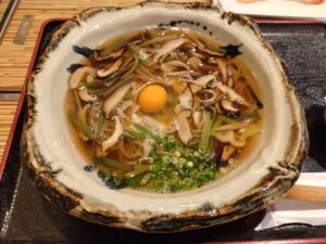 初めて行った郊外の蕎麦屋さんで山菜蕎麦+生卵