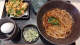 初めて行った郊外の蕎麦屋さんで山菜蕎麦+生卵