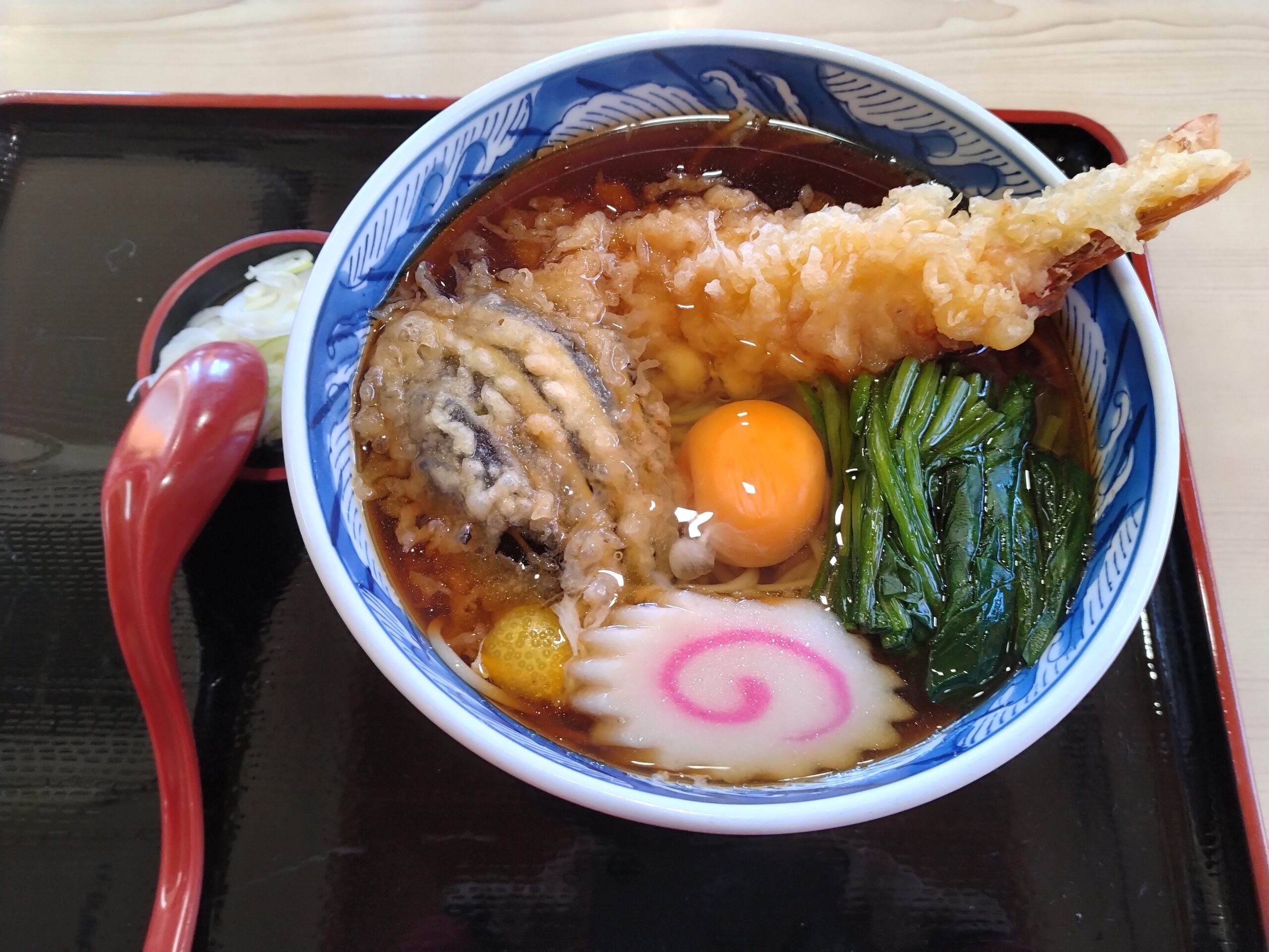 昨日は昭和感。今日は平成感のある蕎麦屋さんで天ぷら蕎麦+生卵